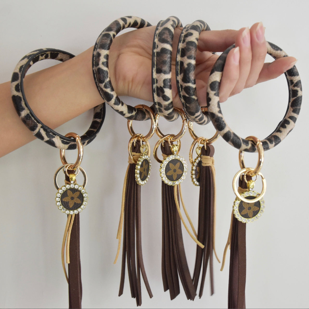 Vegan Leather bangle bracelet that doubles as a keychain! But wait!! The cutest little charm is added to these to give luxury finish. Quality hardware and gorgeous tassle.