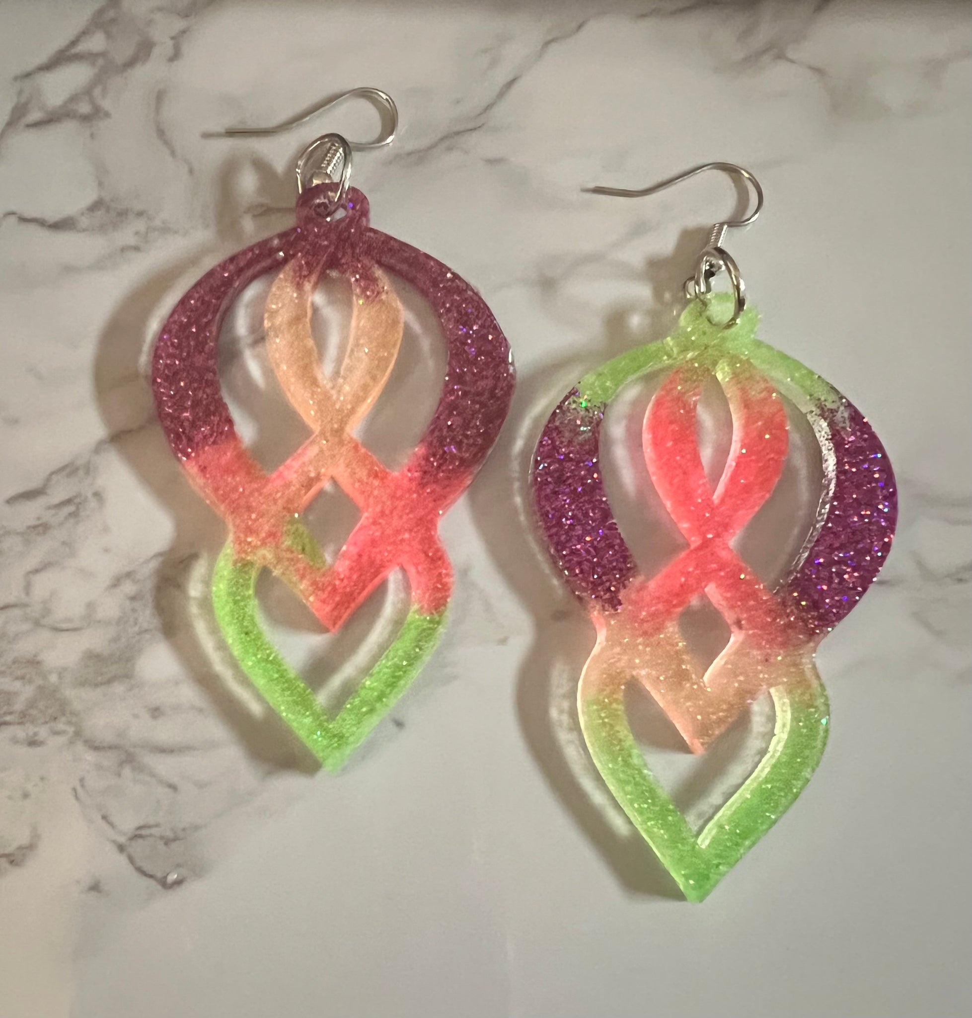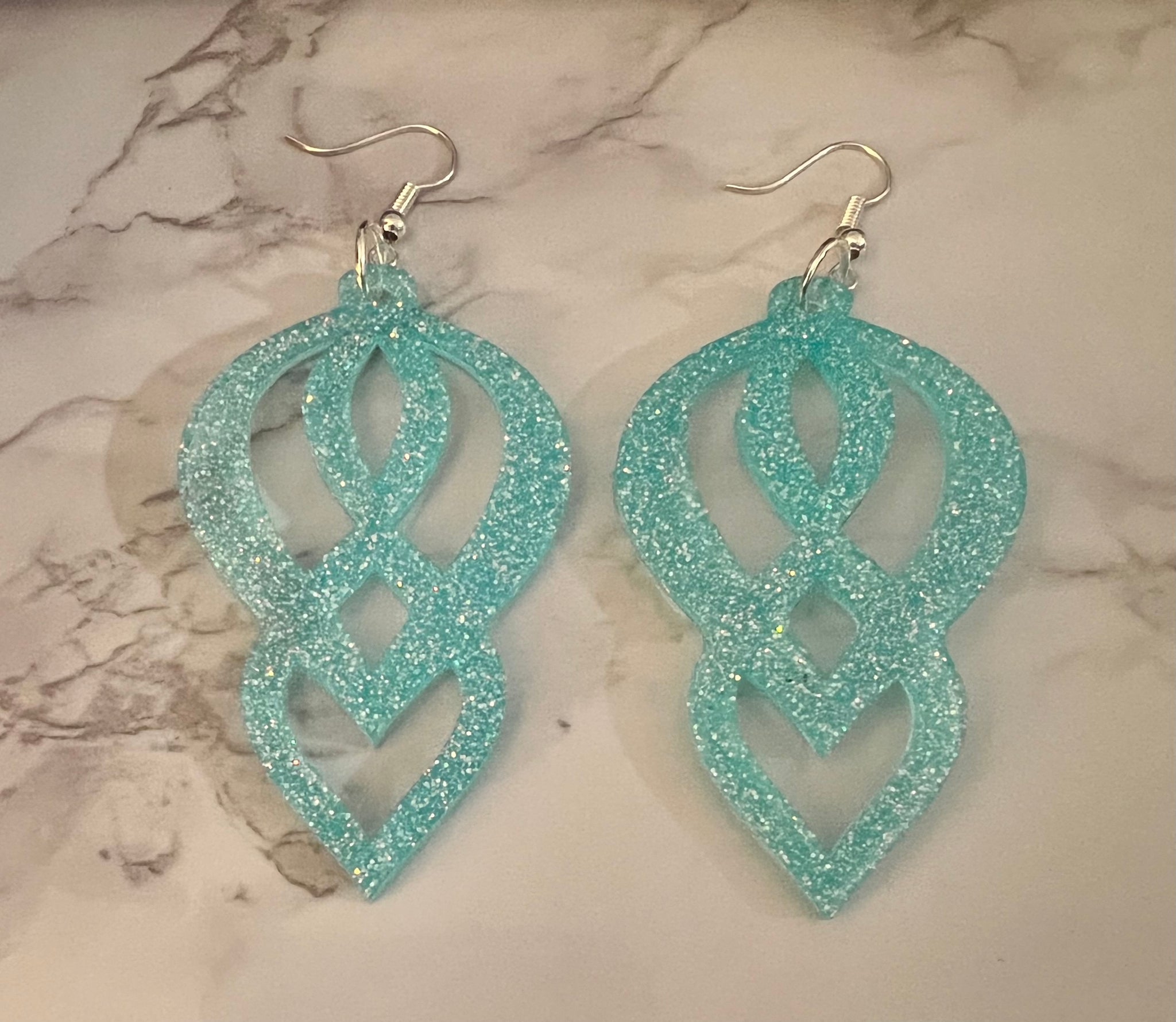 sparkly statement earrings, event earrings, formal earrings, dress up earrings, sparkle resin, glitter resin, dangle glitter earrings, sparkle, glam, style, & perfect.