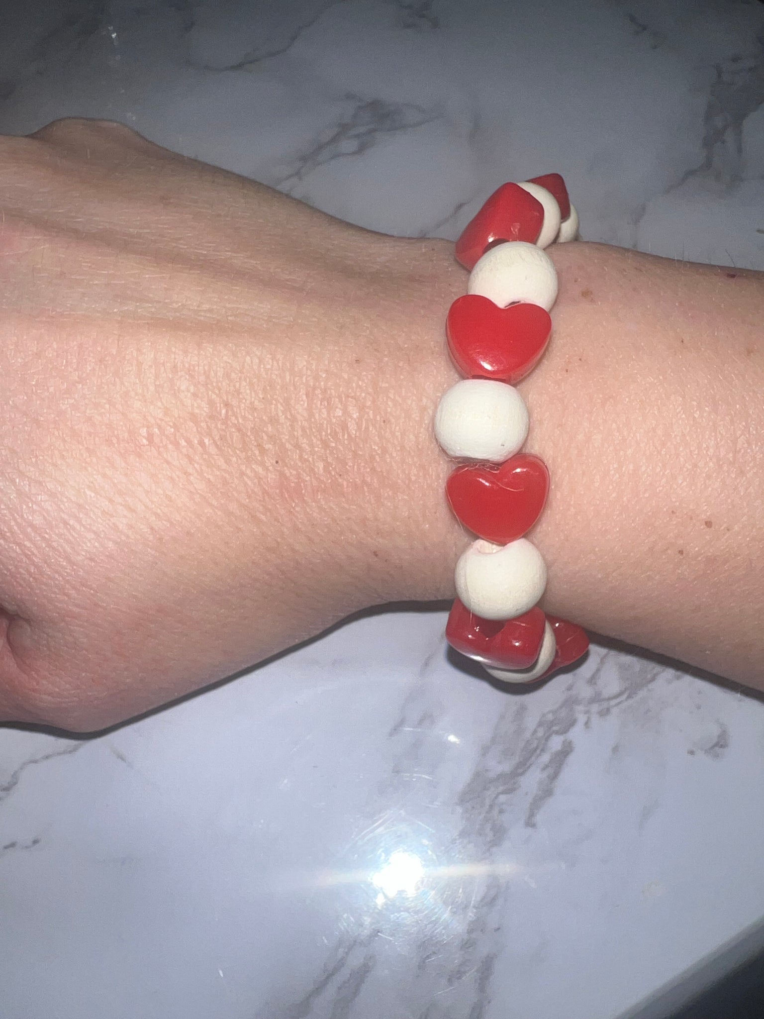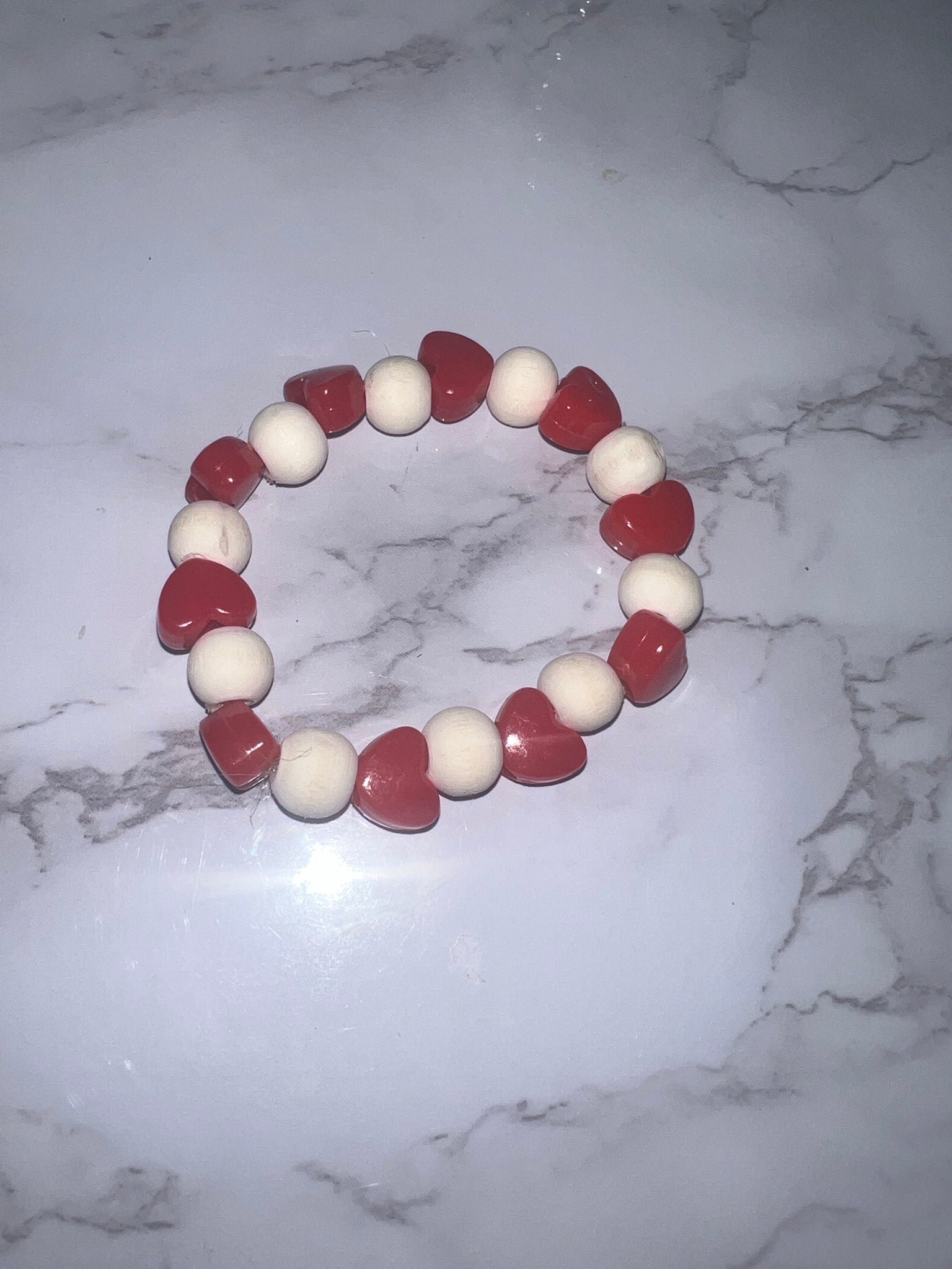 Natural wood beads & Red Heart Bracelet.
