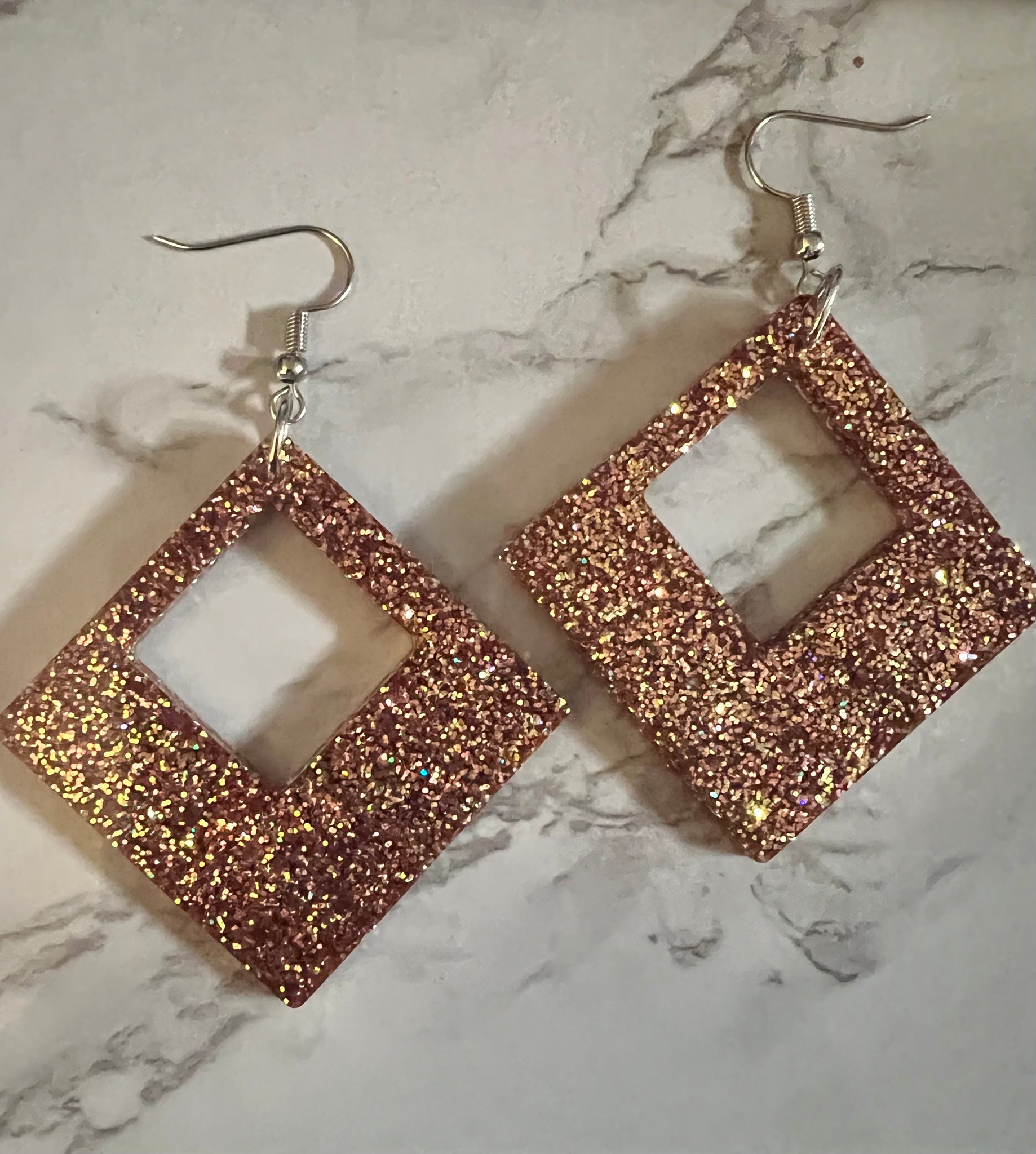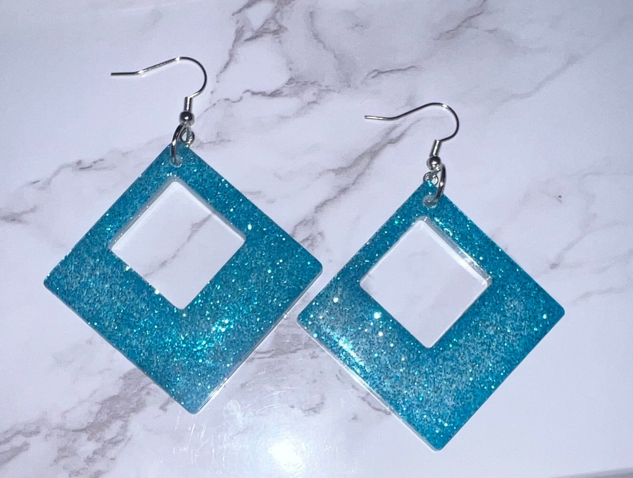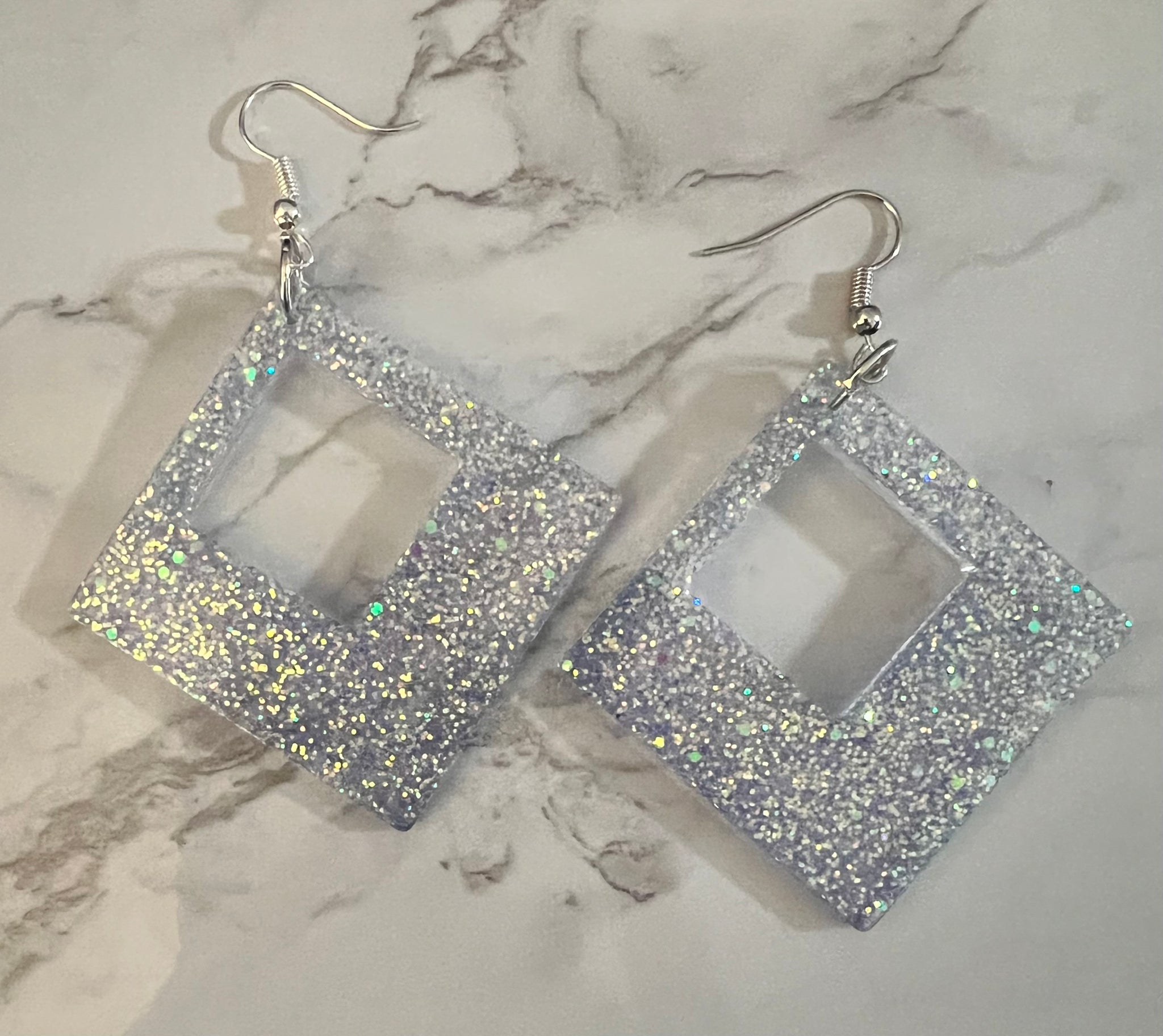 sparkly statement earrings, event earrings, formal earrings, dress up earrings, sparkle resin, glitter resin, dangle glitter earrings, sparkle, glam, style, & perfect.