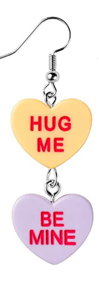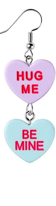 Unique Design: Simple heart design with “Hug Me” and “Be Mine”, single heart and double heart earrings will never go out of style! The candy-colored earrings can easily go well with all kinds of clothing styles, which make you more eye-catching!