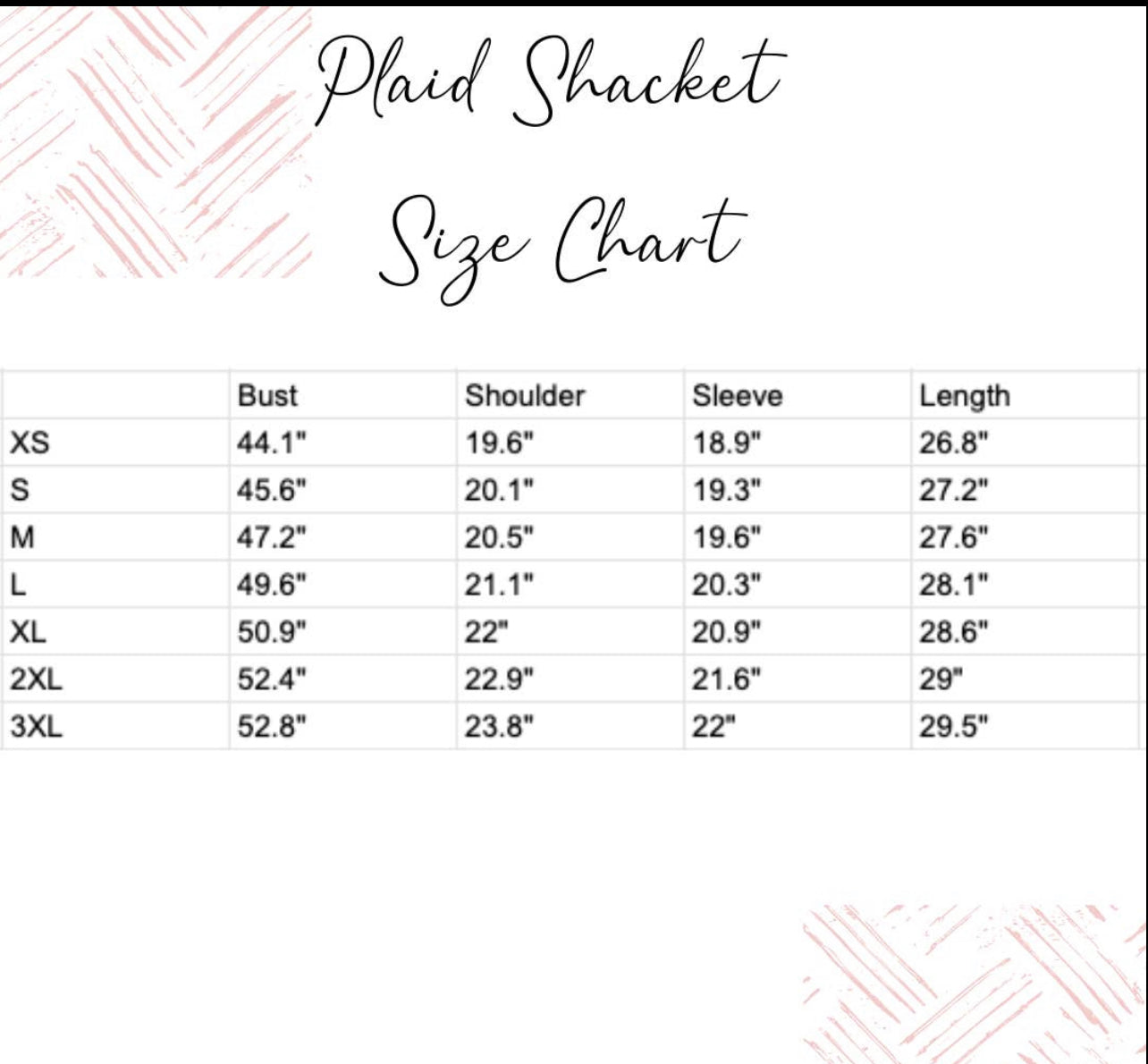 Fall in with our new plaid shackets! Endless opportunities of style! Layer over your favorite tank, grab your favorite jeans, and take on fall and winter in style! Details: 100% Polyester Hand wash/Delicate Cycle. Hand to dry. Shacket is accented with silver functional buttons, front flap pockets, hidden pockets and a button sleeve closure.