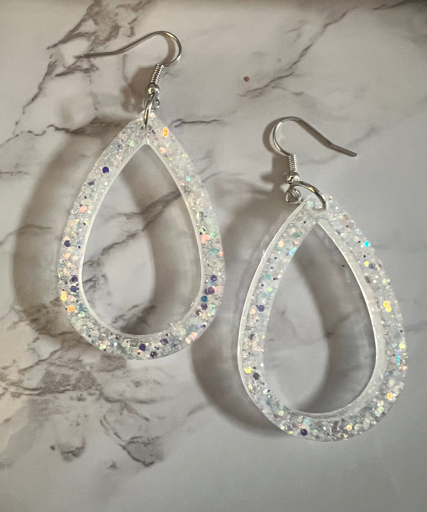 sparkly statement earrings, event earrings, formal earrings, dress up earrings, sparkle resin, glitter resin, dangle glitter earrings, sparkle, glam, style, & perfect.