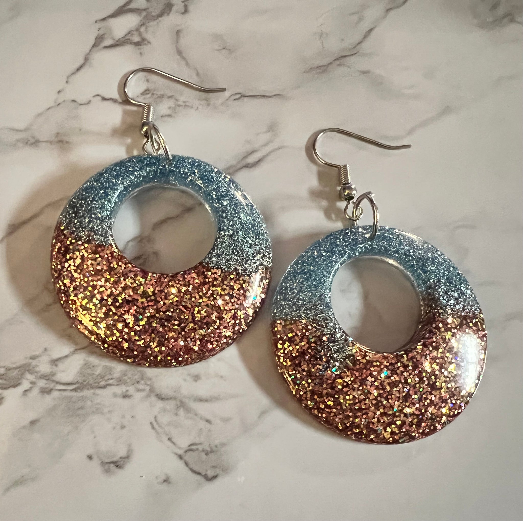 sparkly statement earrings, event earrings, formal earrings, dress up earrings, sparkle resin, glitter resin, dangle glitter earrings, sparkle, glam, style, & perfect.