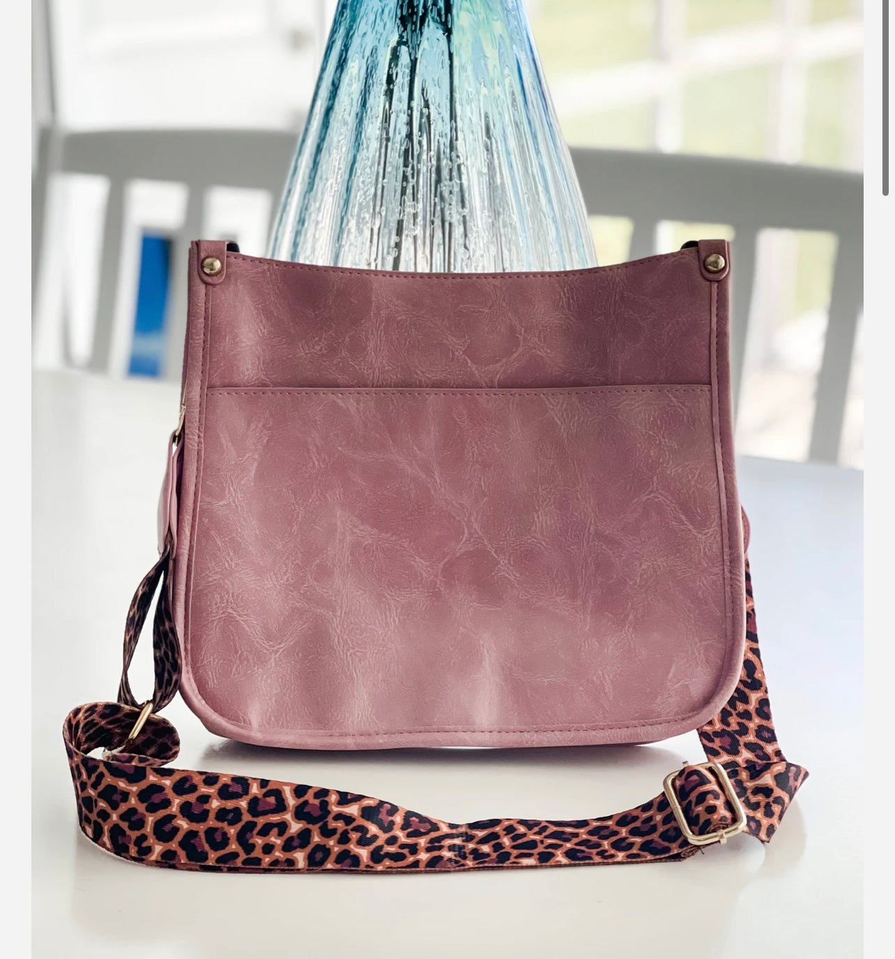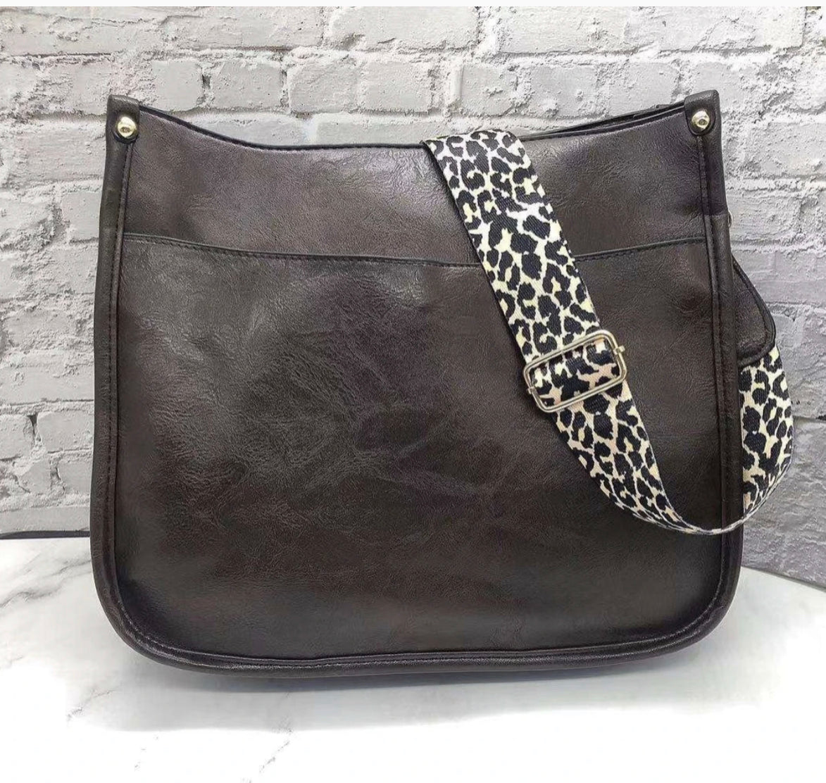 Made of quality, vegan leather with nylon leopard strap & full zipper closure.